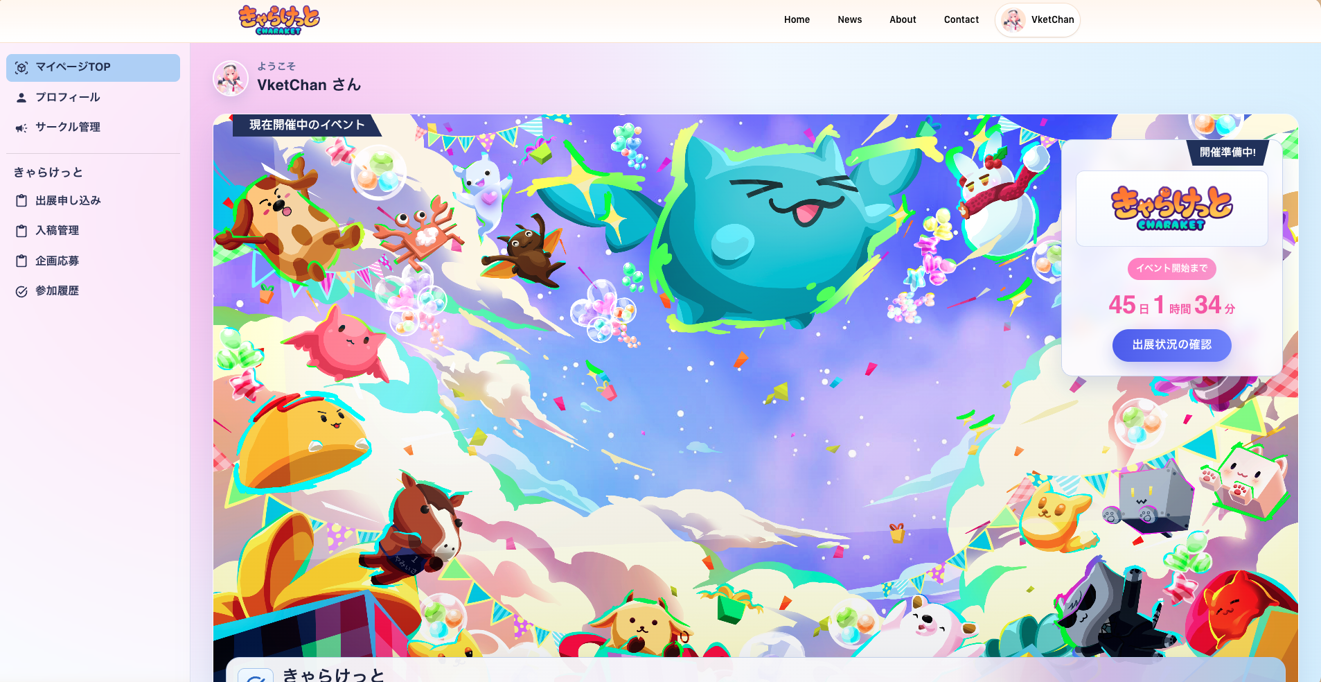 きゃらけっとの出展者用のマイページがオープンしました。